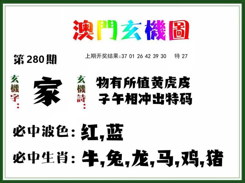 271期:一句解特:三六连三八大数,二六配四二双数。 解:马龙鼠,大数,双数,开鼠42准。 |